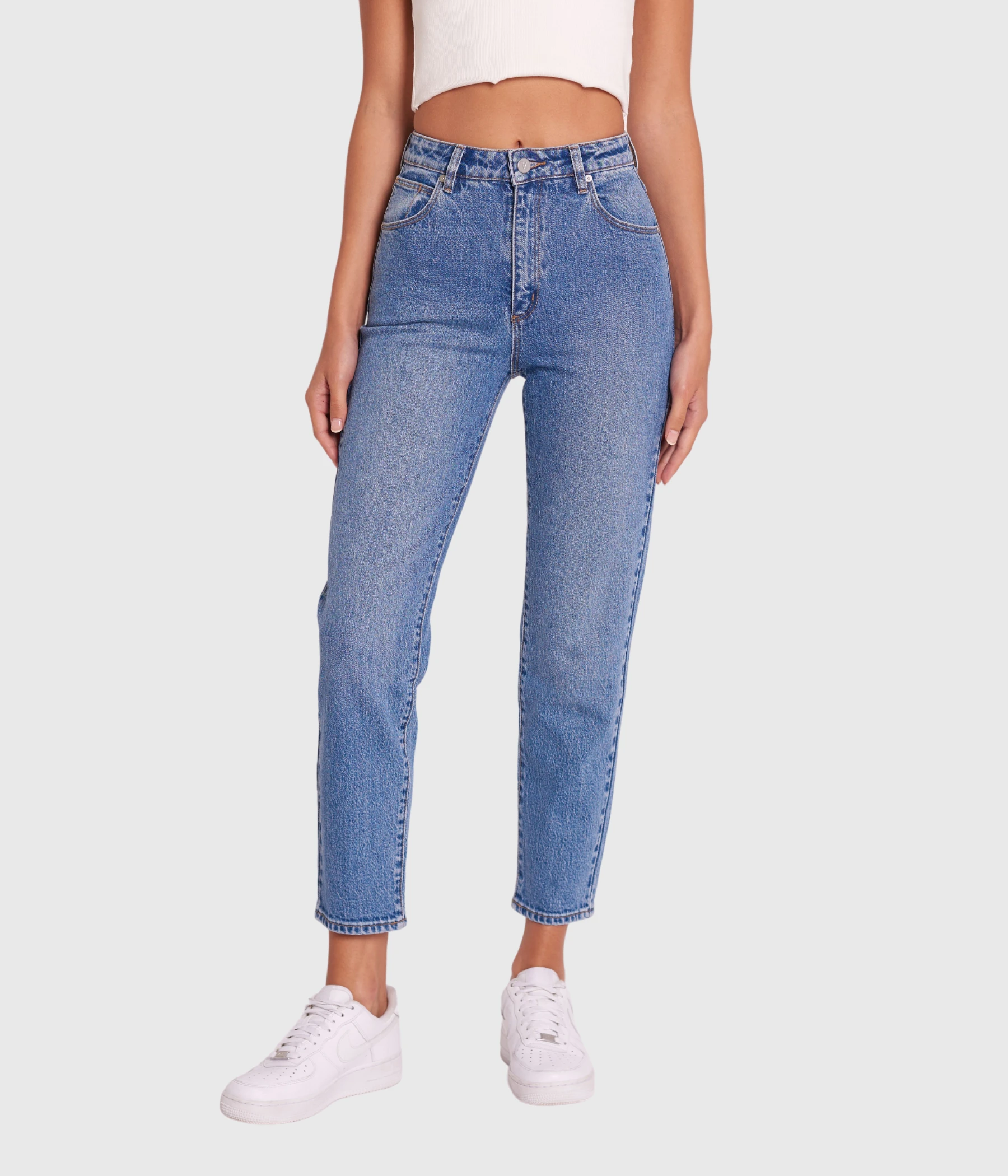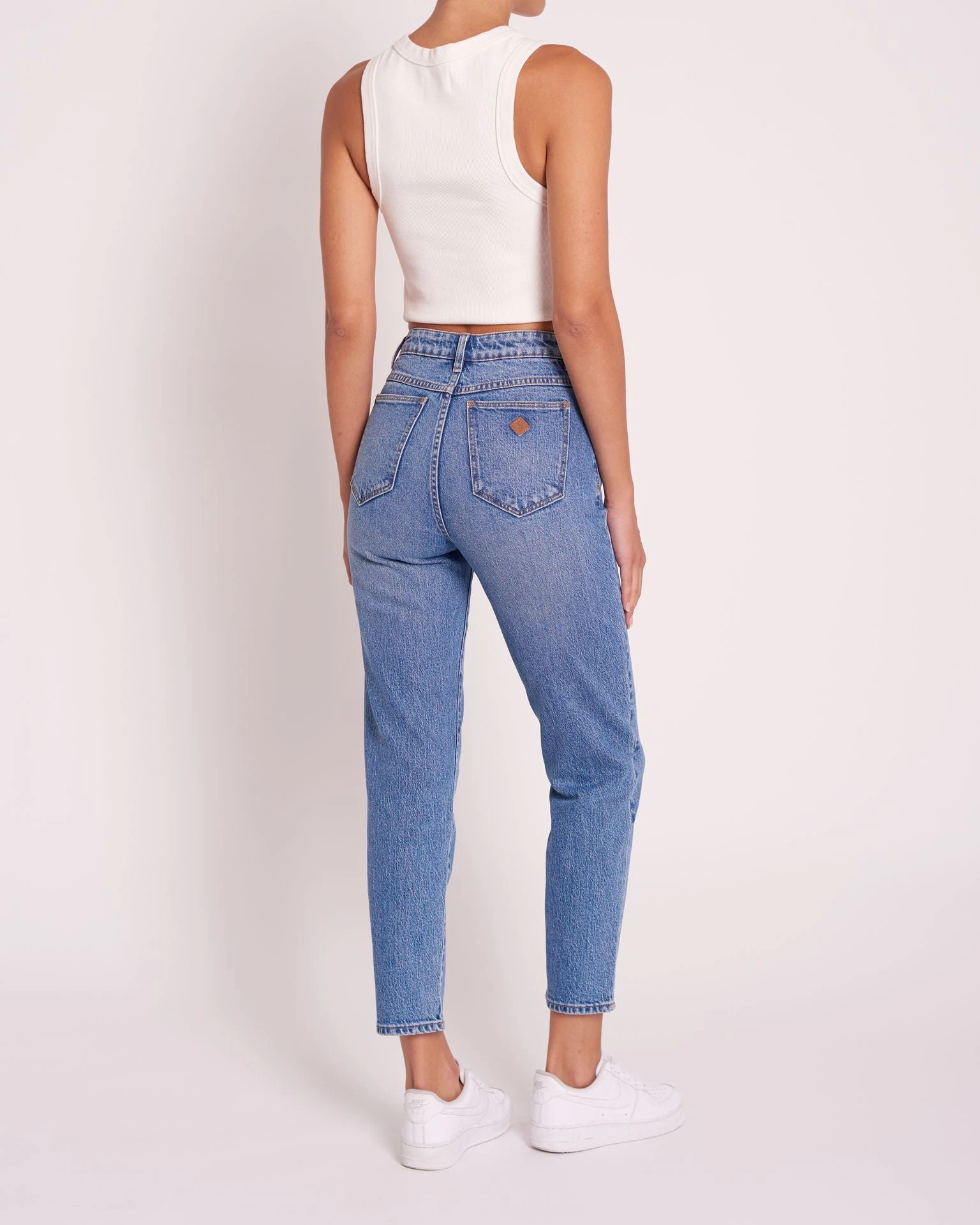 A 94 SLIM är en byxa med hög midja och har en lös avslutning vid ankeln. Byxan har en signatur A-brand logga på bakfickan i brunt.