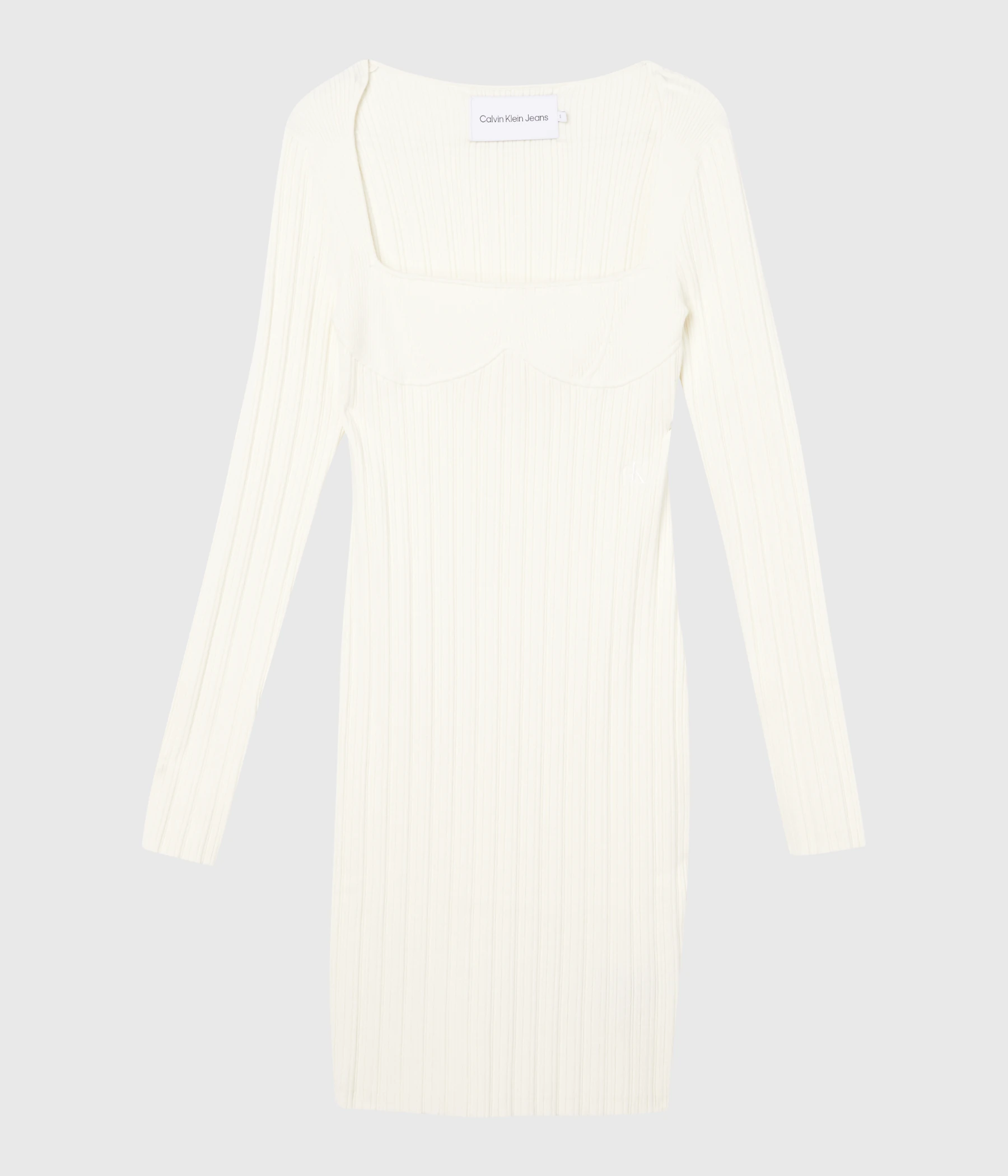 Vit, långärmad klänning från Calvin Klein i ett plisserat material. Klänningen har en fyrkantig halsringning och en figurnära passform.