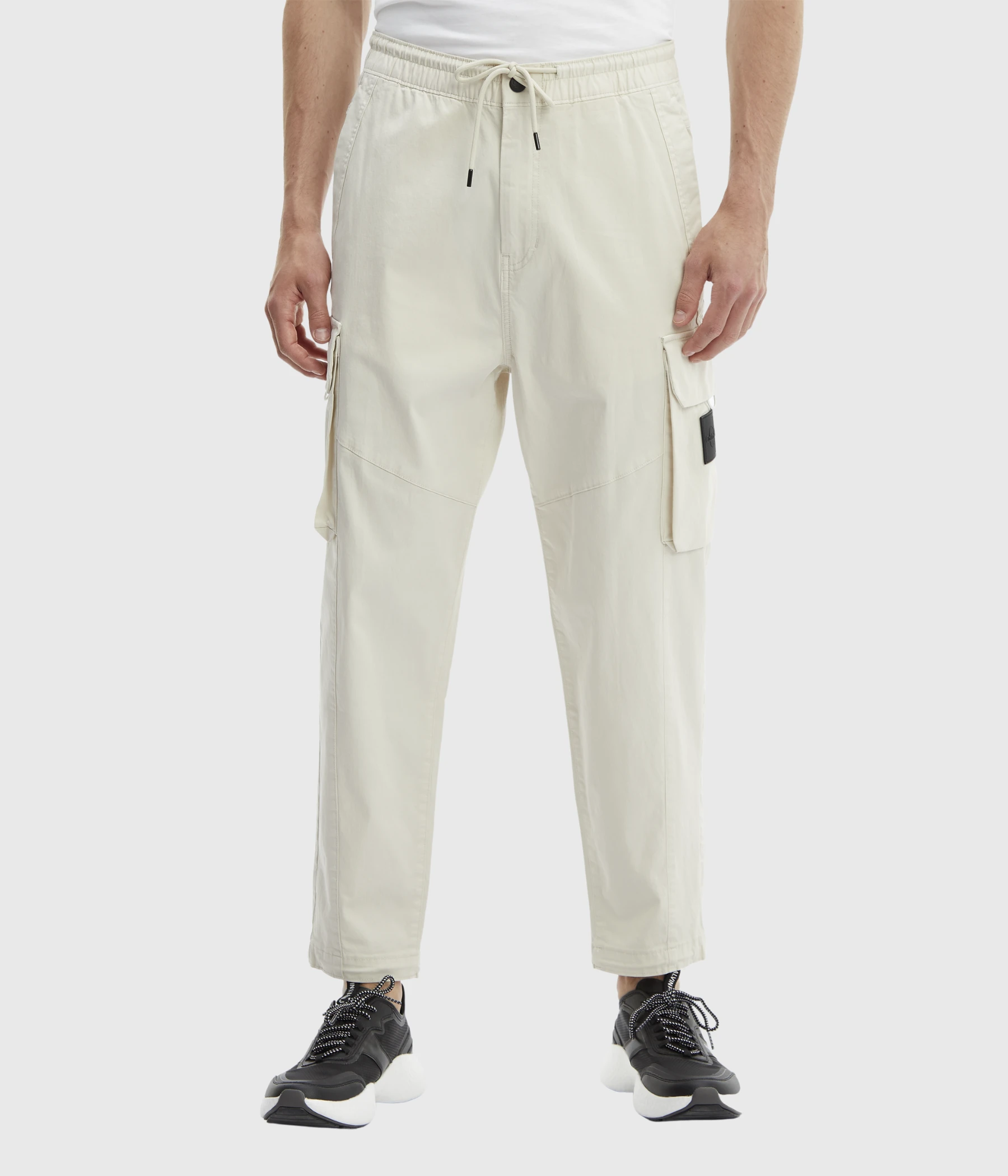 Cargo-byxor i avslappnad passform med dragsko i midjan.