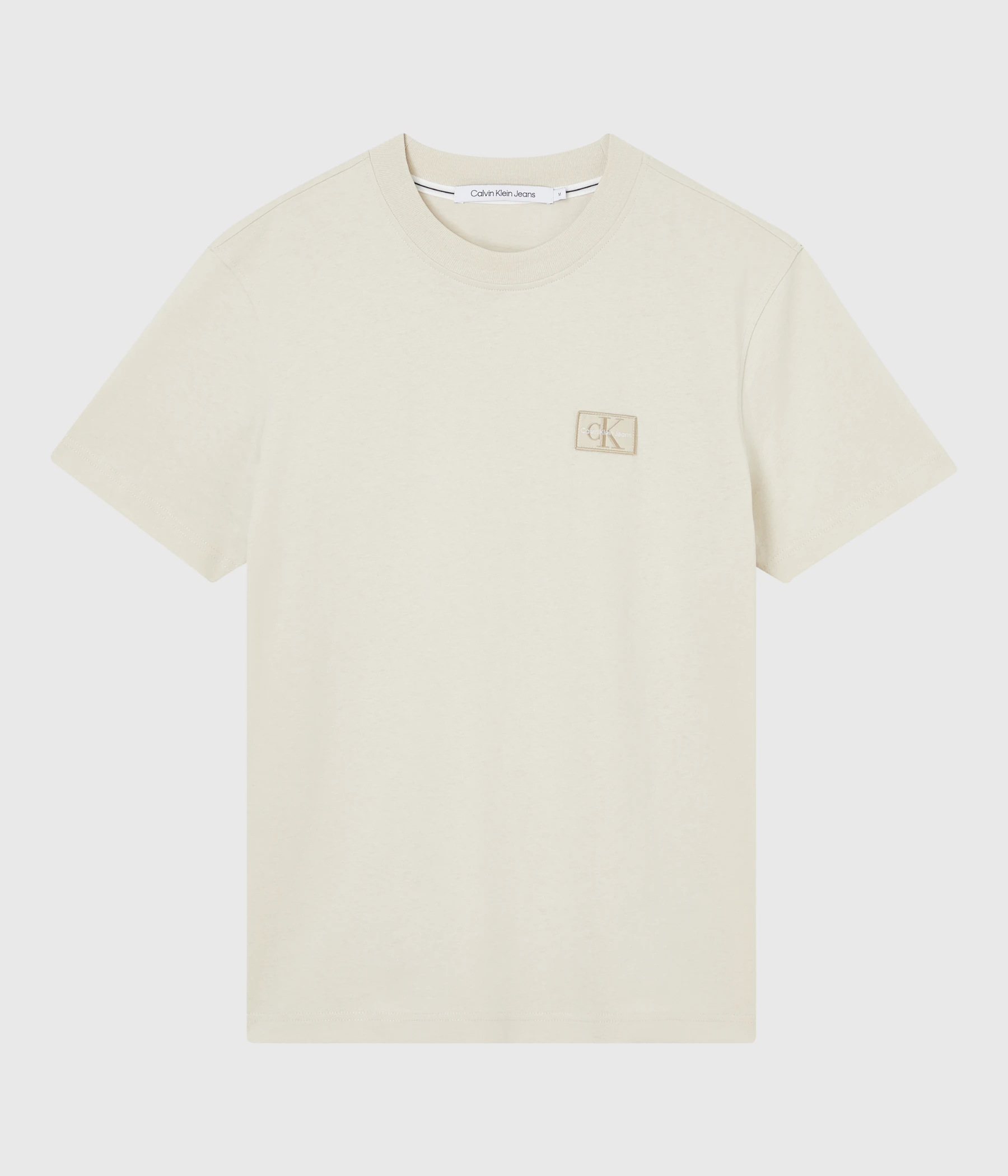 Shrunken badge tee är en återkommande favorit från Calvin Klein. T-shirten har ett tryck på bröstet och en skön passform. Matcha gärna denna tröjan med ett par snygga jeans.