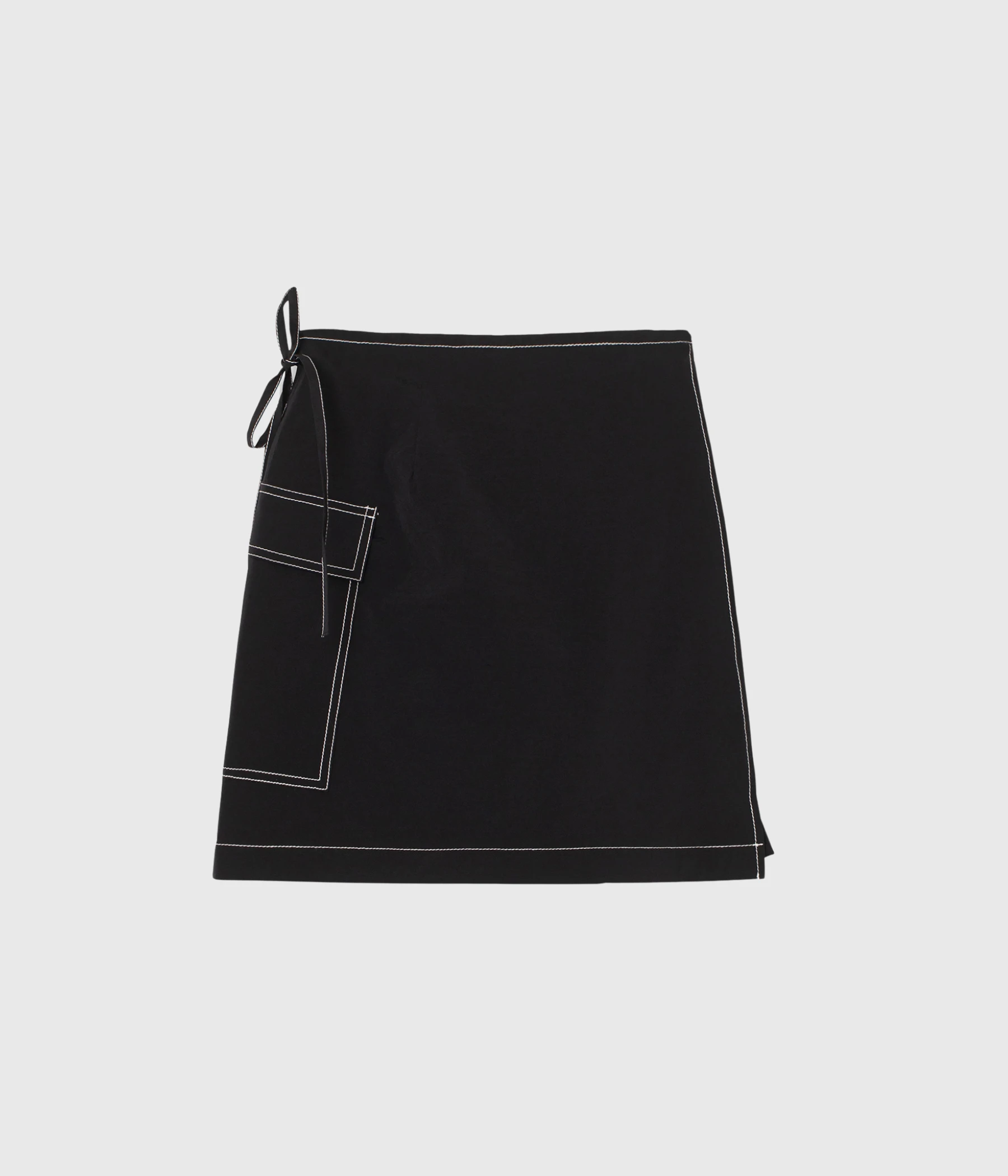 Kort nylon kjol från Envii i svart. Kjolen knyts snyggt i sidan och har en stor ficka som detalj.