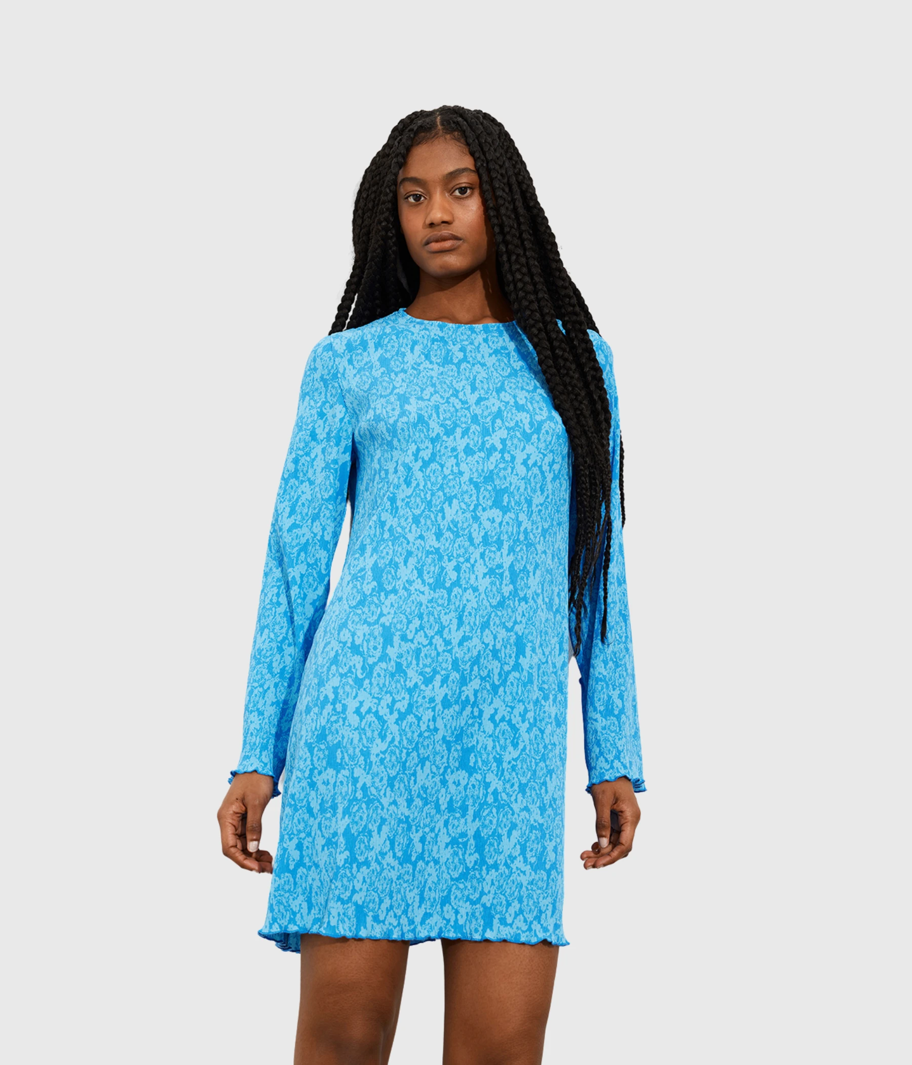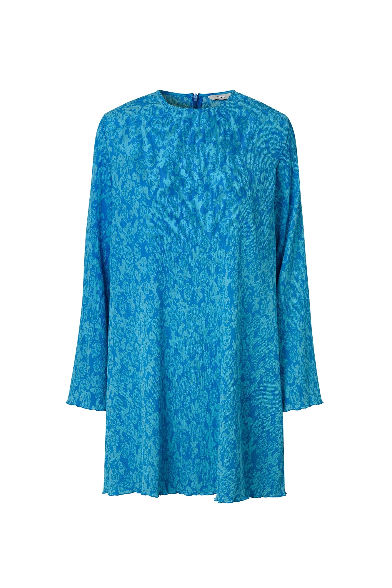 Mette är en långärmad klänning från Envii med en rund fin halsringning. Klänningen har en härlig färggladd färg men snyggt mönster