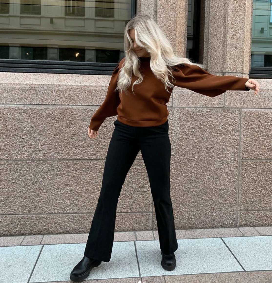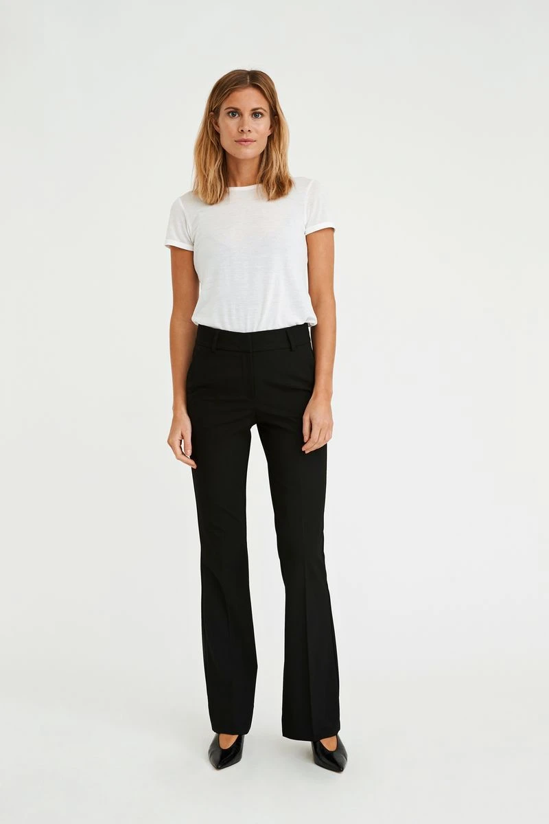 Det sitter i detaljerna med Clara 285! Detta är en klassiskt klädd byxa med en trendig och sofistikerad flare och eleganta pressveck. Den har en något högre midja som markerar dina kurvor på rätt plats. En klassisk byxa med moderna detaljer. Om du är lite längre blir denna croppad, annars kan du bära den som en hellång byxa.