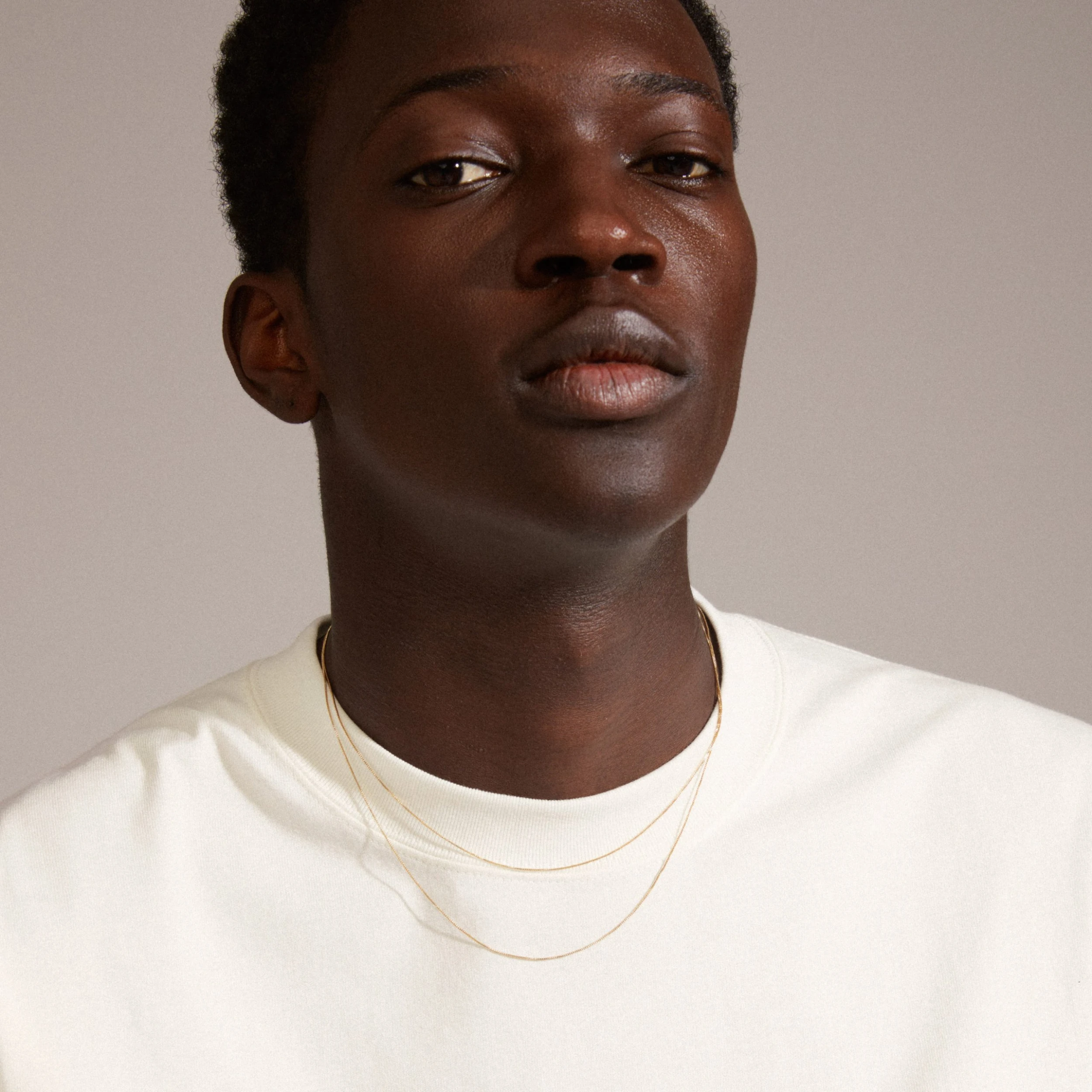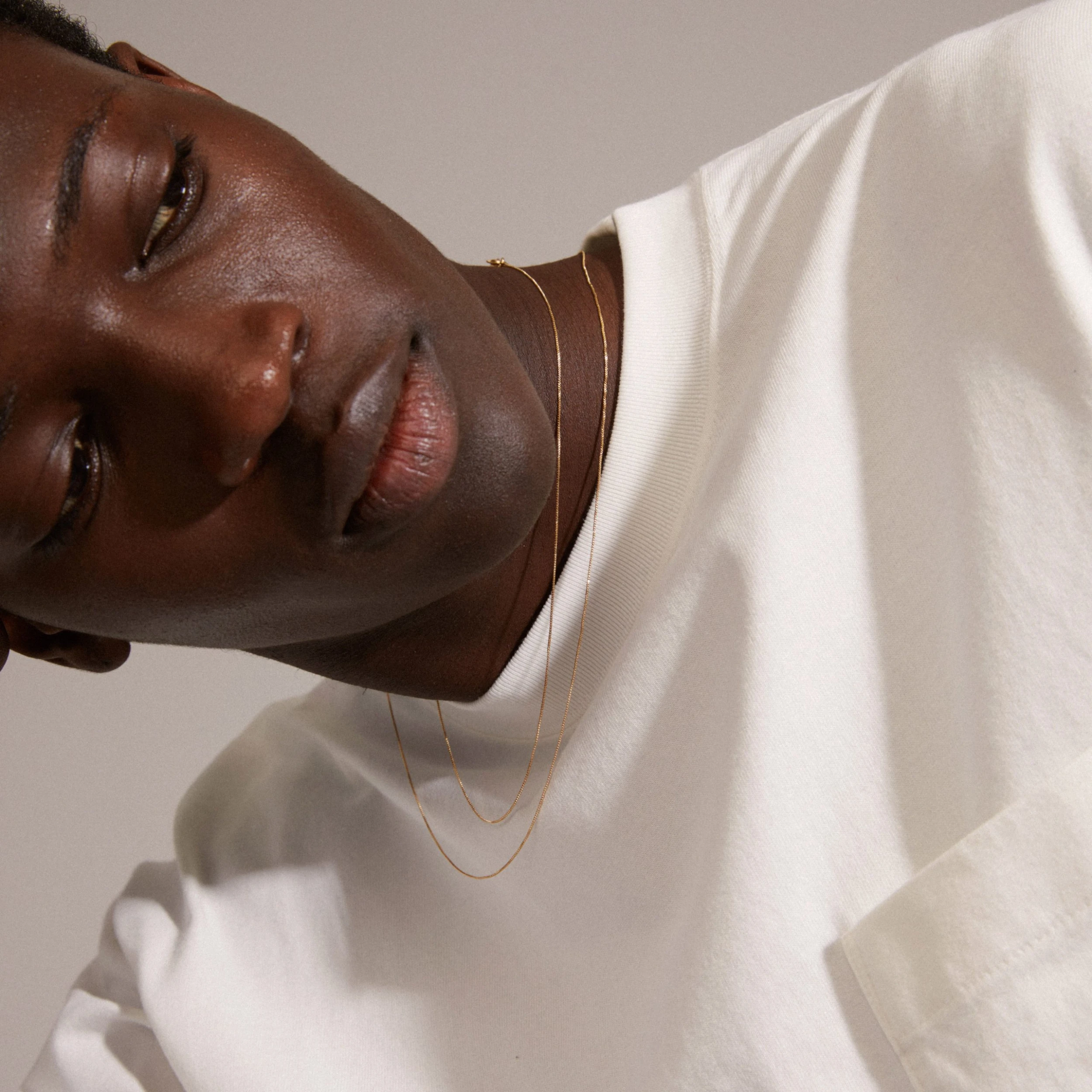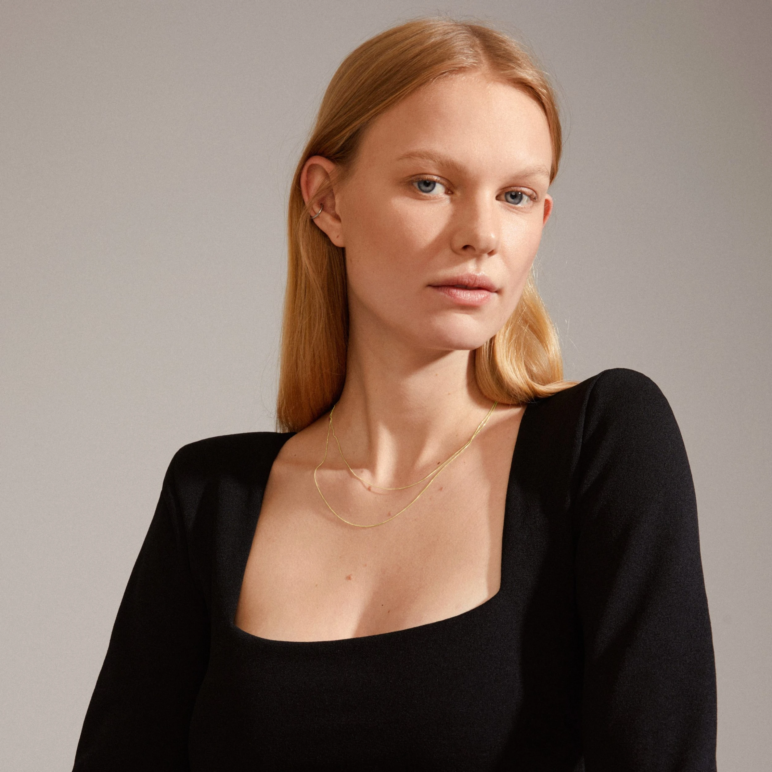 Ett elegant halsband som passar till alla tillfällen. Halsbandet är guldpläterat med en alger på lager effekt och passar perfekt att bäras för sig självt, eller att styla i fler lager med andra halsband.