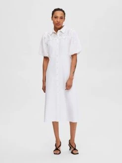 Selected Femme SLFVIOLETTE 2/4 ANKLE BRODERI DRESS B (bright White)