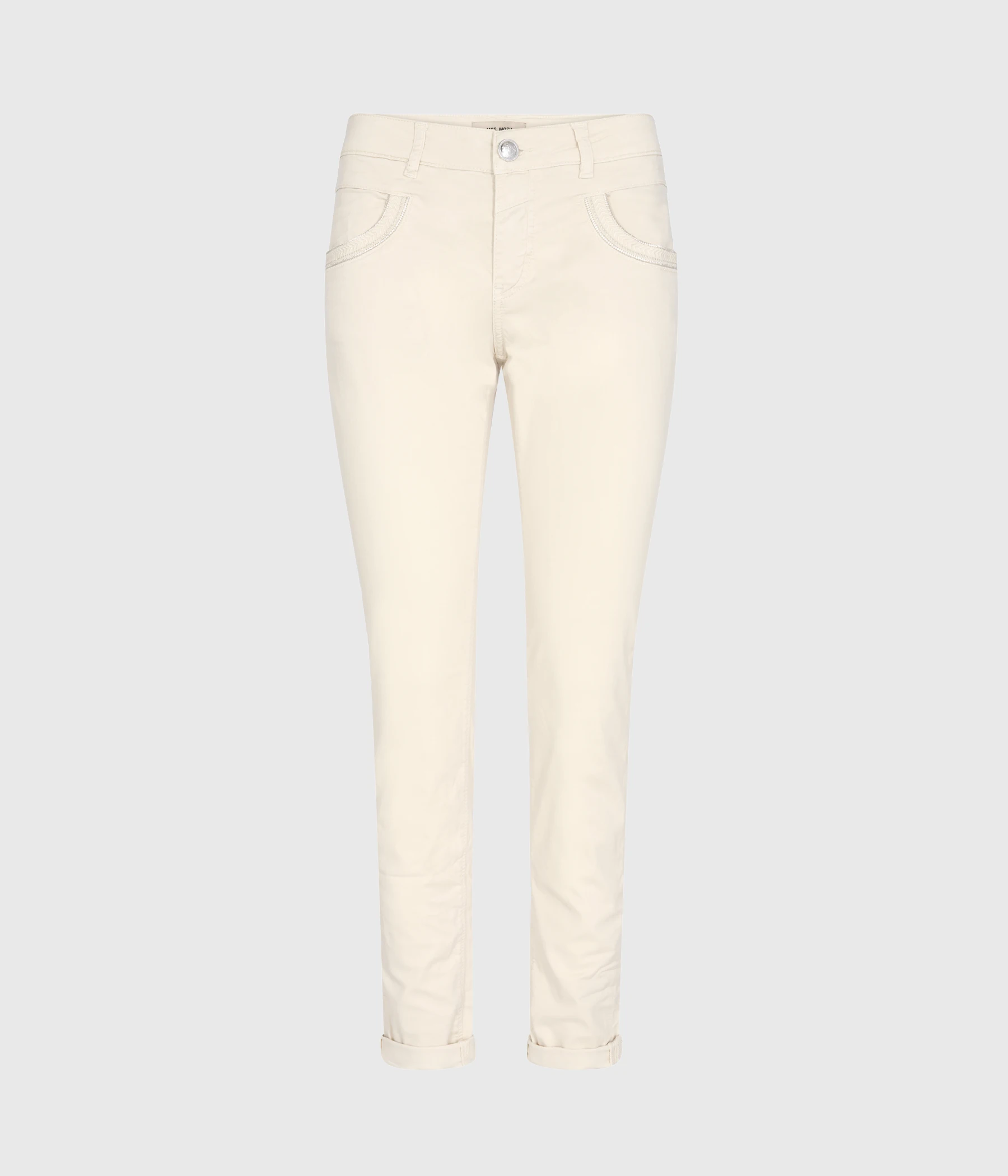Naomi treasure pant är ett par hellånga vita byxor från Mos mosh i en beige färg. Byxan har en smal passform med snyggt uppvikta ben nedtill!