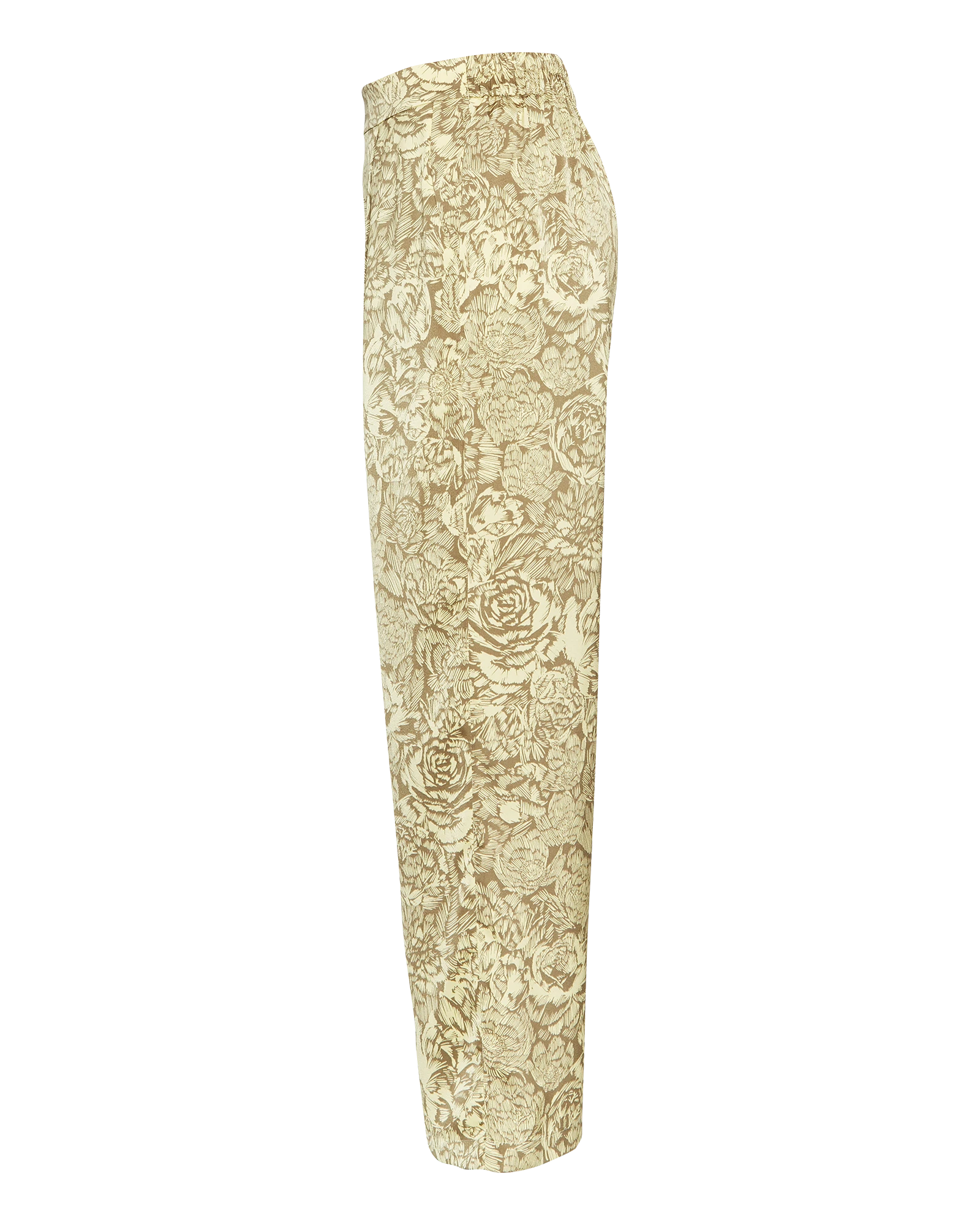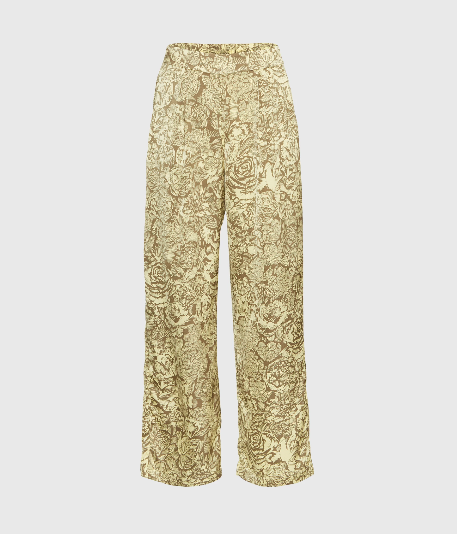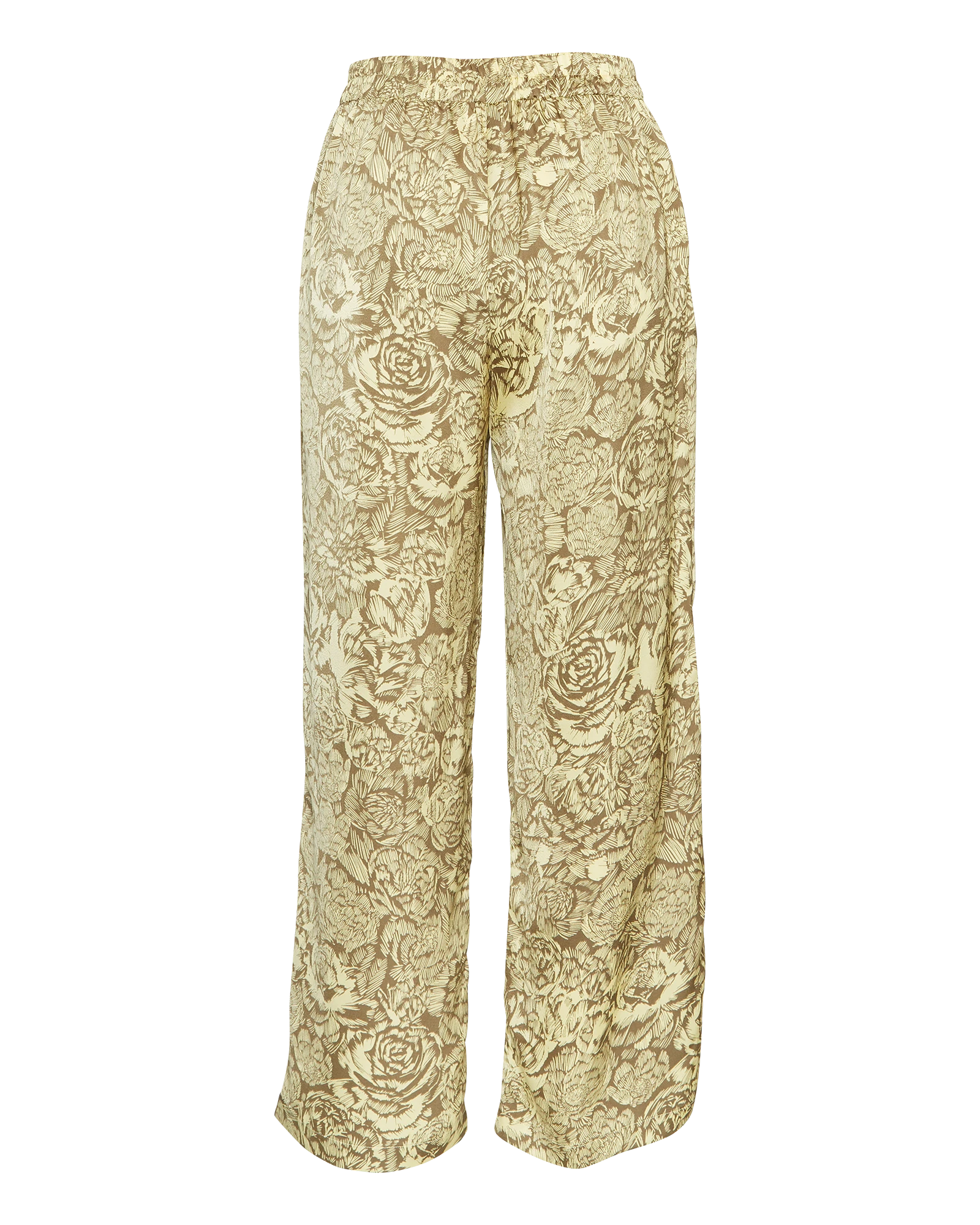 Raka byxor från Moss Copenhagen i ett gult mönstrat material. Byxorna är höga i midjan med en skön resår baktill!