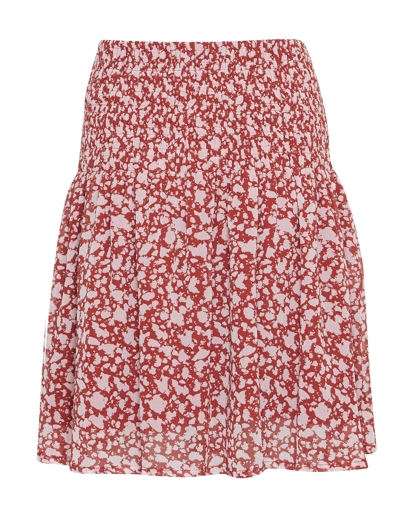 Kort mönstrad kjol från Moss Copenhagen i en härlig färg. Kjolen har resår i midjan och ett fint volangfall.