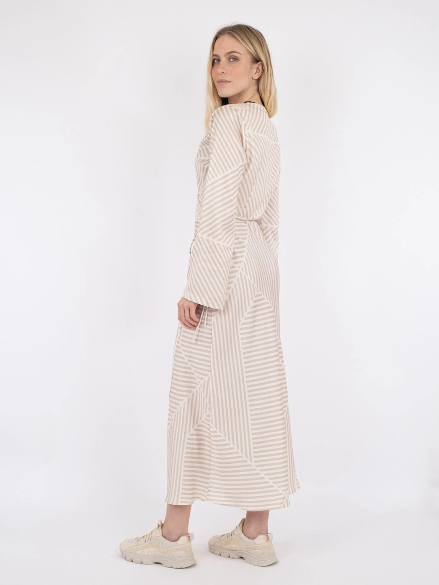 Fin omlottklänning från Neo Noir. Klänningen kommer i en midilängd med raka ärmar i coolt grafiskt tryck.