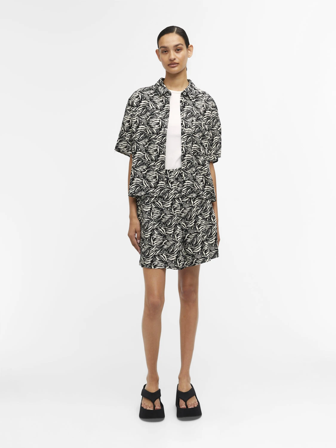 Avslappnade shorts i en skön linneblandning från Object. De mönstrade shortsen är en del av ett set med matchande skjorta i samma material. Shortsen har en avslappnad passform med dold blixtlåsstängning.