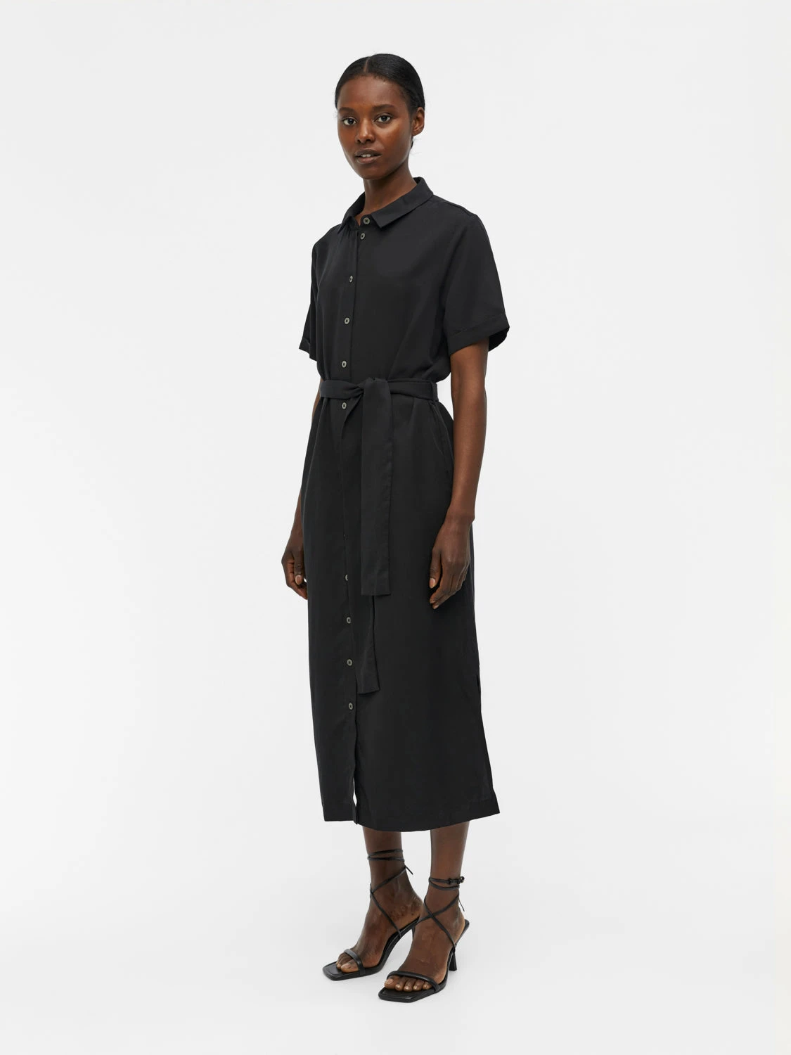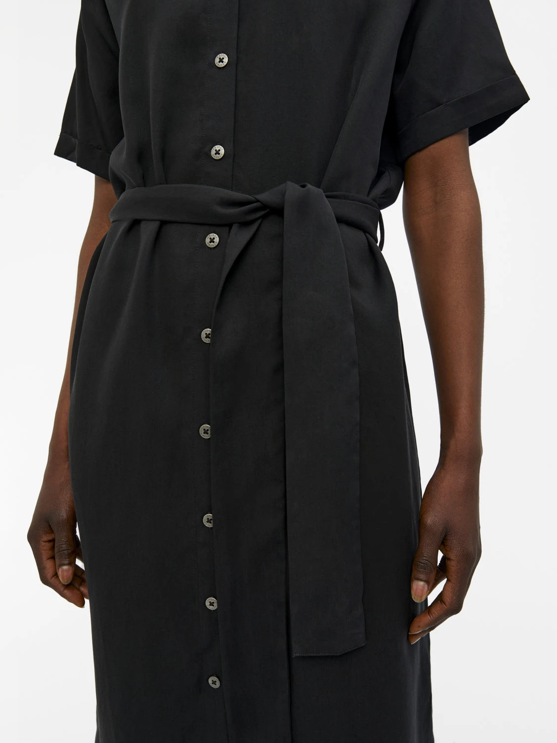 Kortärmad klänning från Object med snygga detaljer. Klänningen har ett band i midjan som fint markerar midjan. Perfekt klänning när man vill vara både snygg och bekväm!