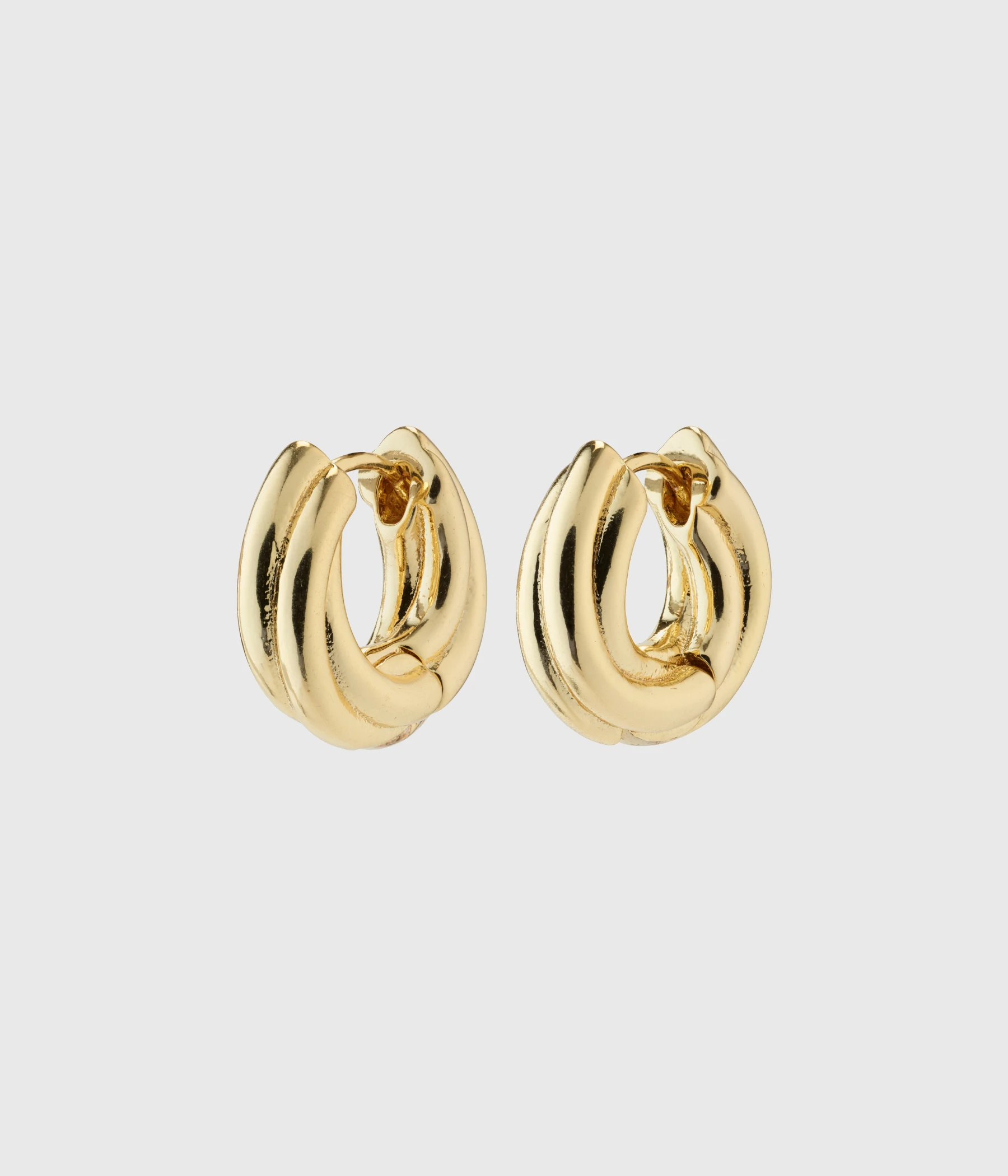 Curvy and classy! Lyft din outfit med guldpläterade, chunky creoler från Pilgrim. Den mjuka designen ger örhängena ett elegant uttryck som är perfekt för fester, men som naturligtvis också kan lyfta en vardaglig look. Ett basic piece till din smyckessamling som är tillverkat av minst 75 % återvunnet material.