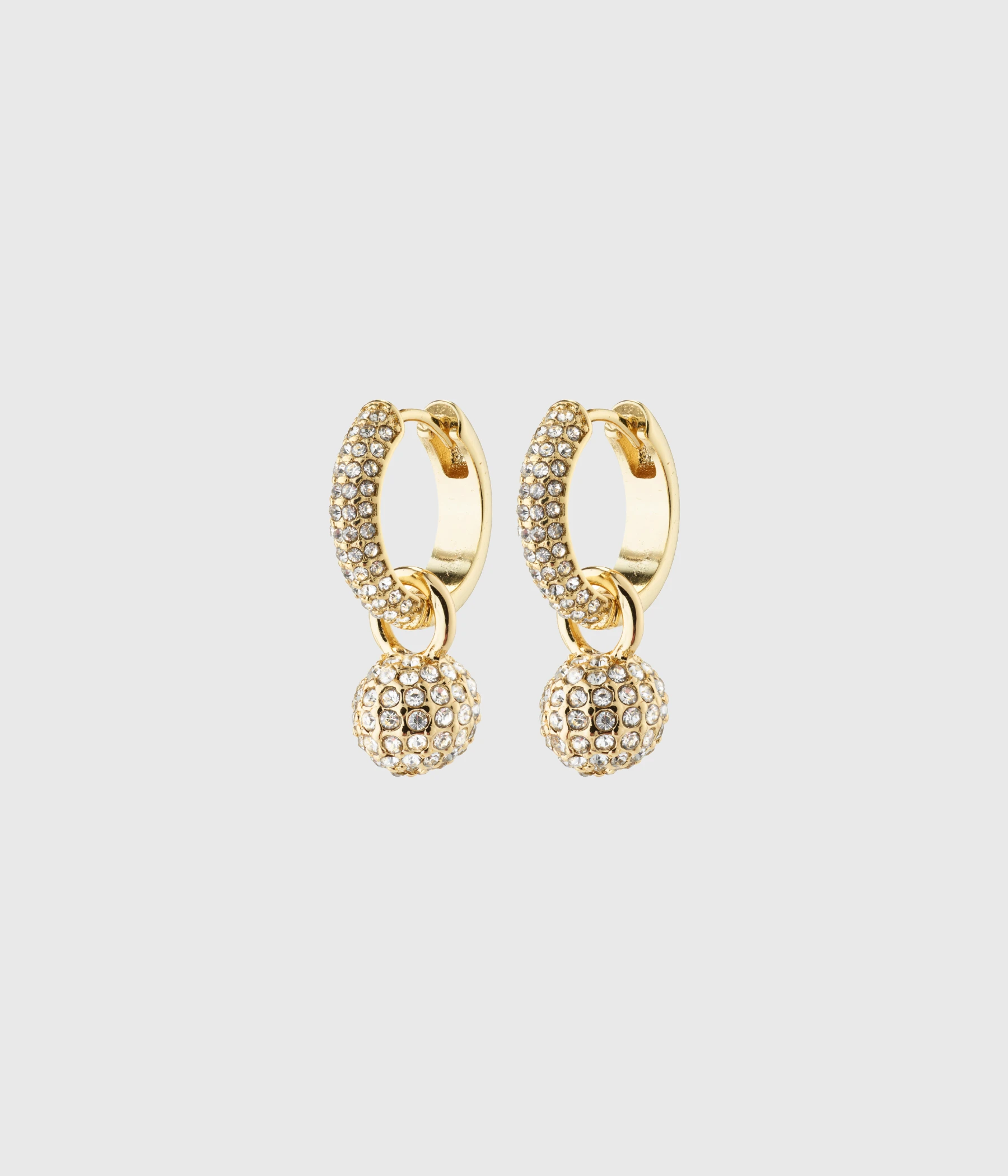 Chunky huggie hoops med glittriga kristaller som fångar blicken. Välj om du vill styla örhängena med eller utan hängen och få en ögonfångande look som matchar din bästa, glammiga outfit.