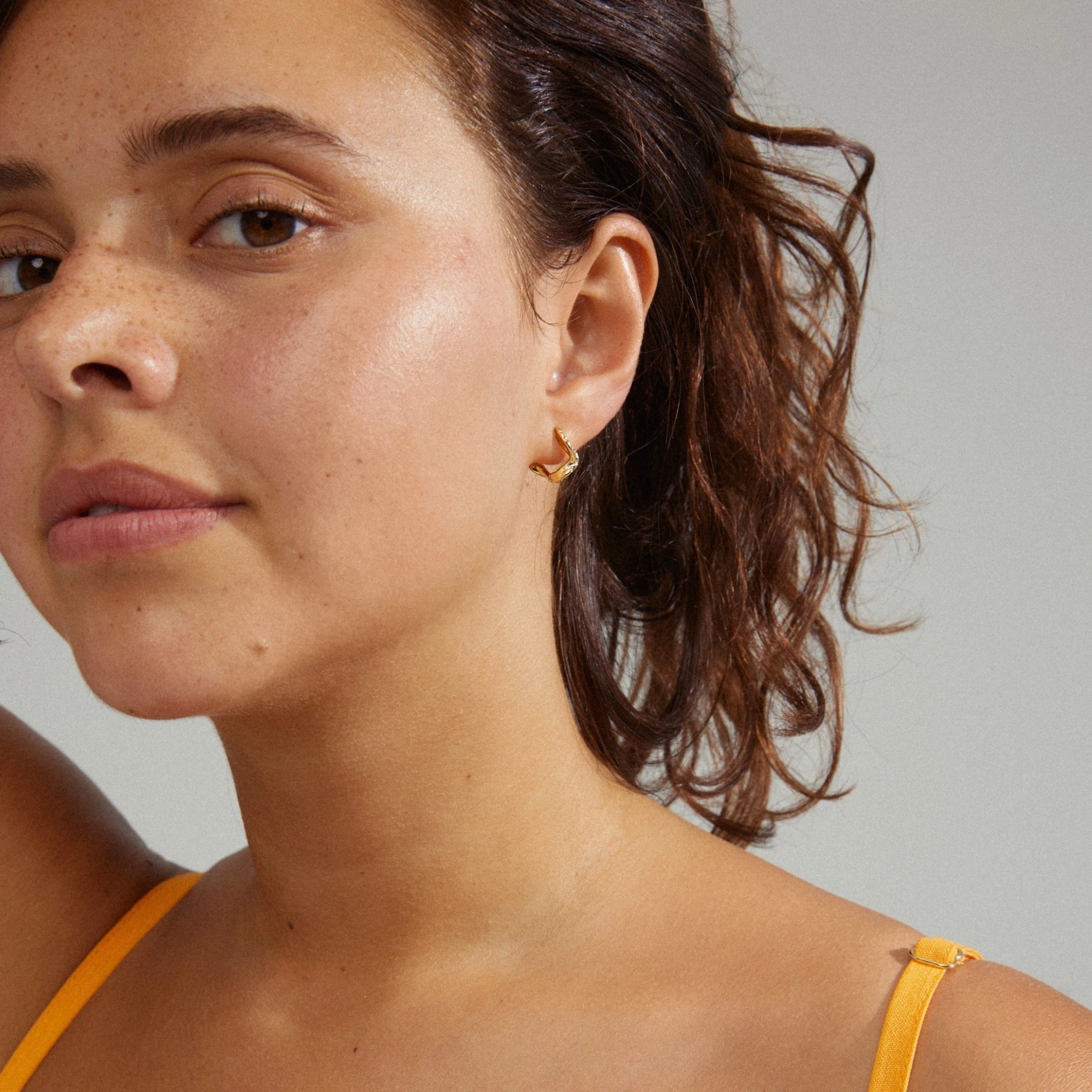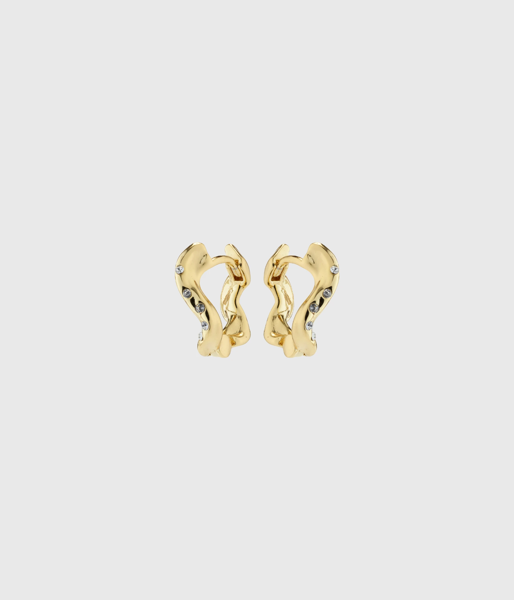 Guldpläterade Evra örhängen från Pilgrim med en harmonisk, handgjord design. Örhängenas organiska silhuett är dekorerad med små strålande Preciosa kristaller som fångar ljuset och ger dig en diskret gnistrande touch. De vågiga små creolerna har ett lättanvänt klicklås som gör det enkelt att använda dem.