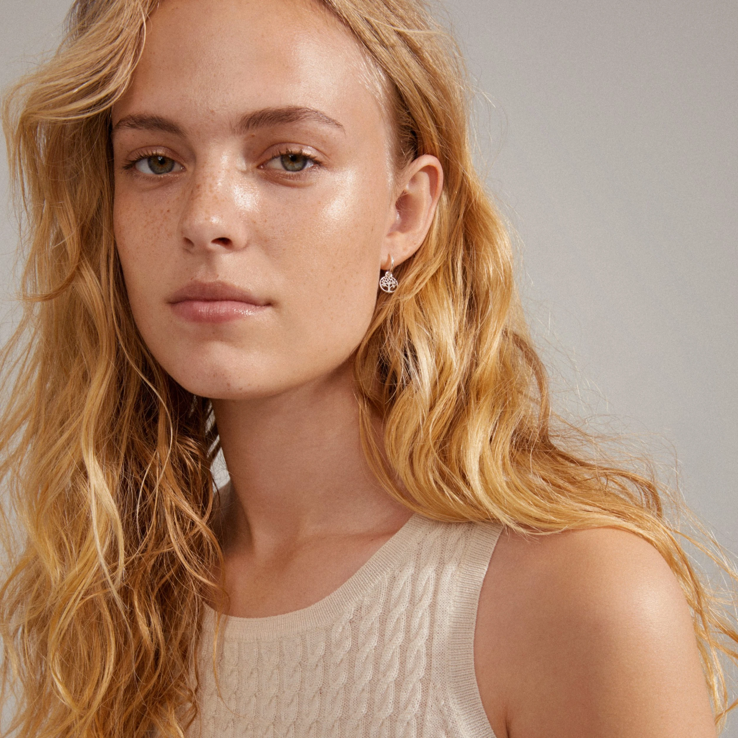 Små cirkulära hängen med fin detalj i form av Livets träd. De är dekorerade med diskreta Preciosa kristaller, som fångar ljuset och skapa glans. Klassisk och tidlös design som representerar en evig symbol och som garanterat blir en favorit genom tiderna.