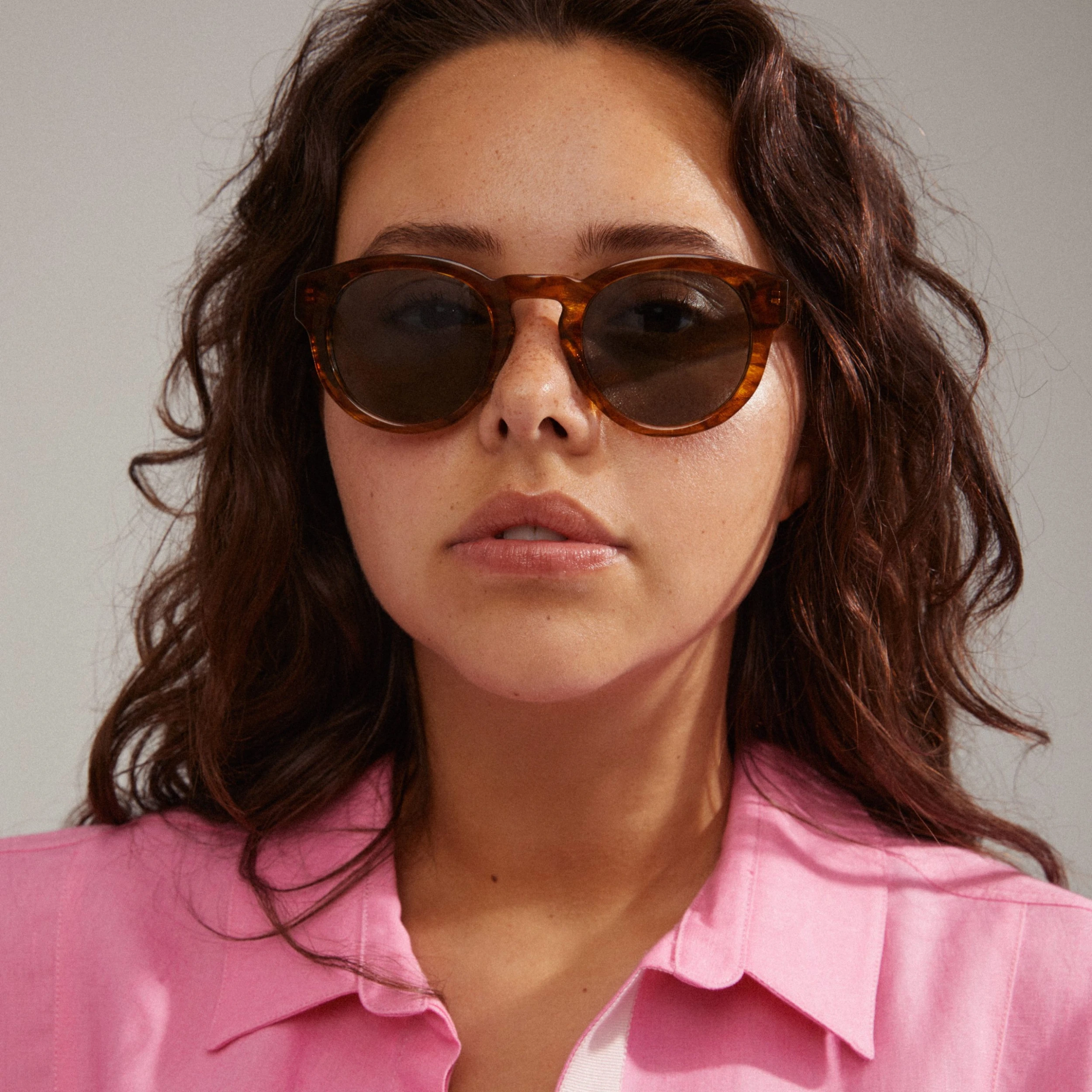 Njut av solnedgången med de klassiska runda Janica sunnies från Pilgrim. High quality glasögon gjorda av sköldpaddsfärgat acetat med en läcker, chunky feel, som håller säsong efter säsong. Nyckelplagget till alla händelser, allt från drinkar på ditt favoritcafé, till bålfest på stranden i solnedgångens skära ljus. Dina Janica shades passar till dem alla. Levereras i ett hållbart fodral med putsduk.