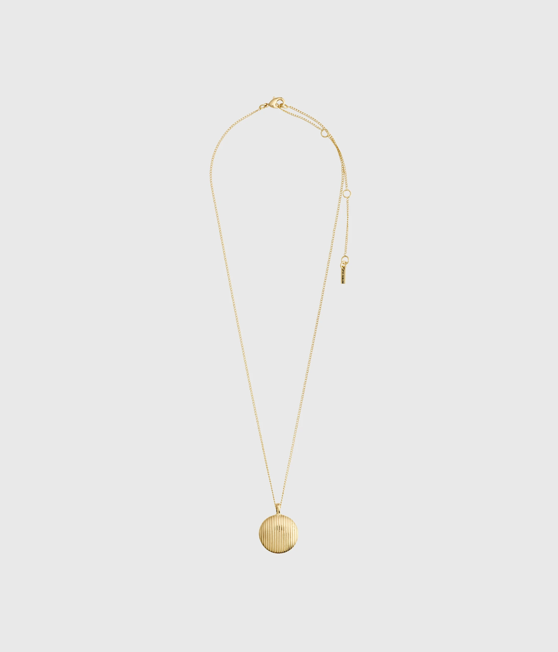 Guldpläterat mynthalsband med medaljong som har en räfflad och en slät sida så att du kan välja vilken stil du vill ha i kombination med din outfit. Vacker i all sin enkelhet och bjuder in dig att kombinera med andra kedjor och accessoar för en personlig look. Möt dagen med ditt nya favoritsmycke.