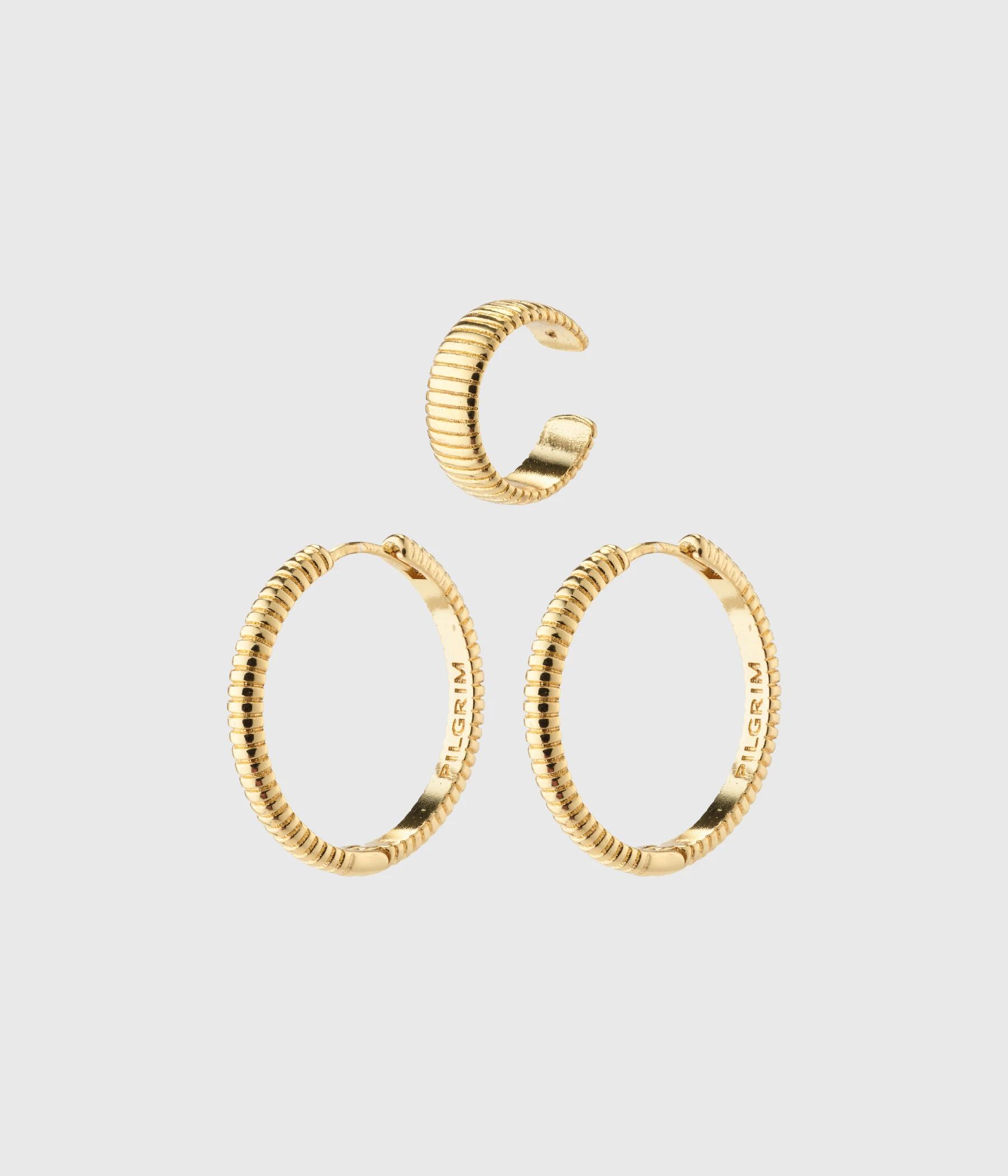 Xena örhängen från Pilgrim är ett must have i din smyckessamling av örhängen. Örhängenas räfflade design fungerar både med minimalistiska outfits och i en mix n’ match look med dina andra favoritsmycken. Justerbar ear cuff och lättanvänt klicklås gör örhängena enkla att använda. Tillverkade av minst 75 % återvunnet material.