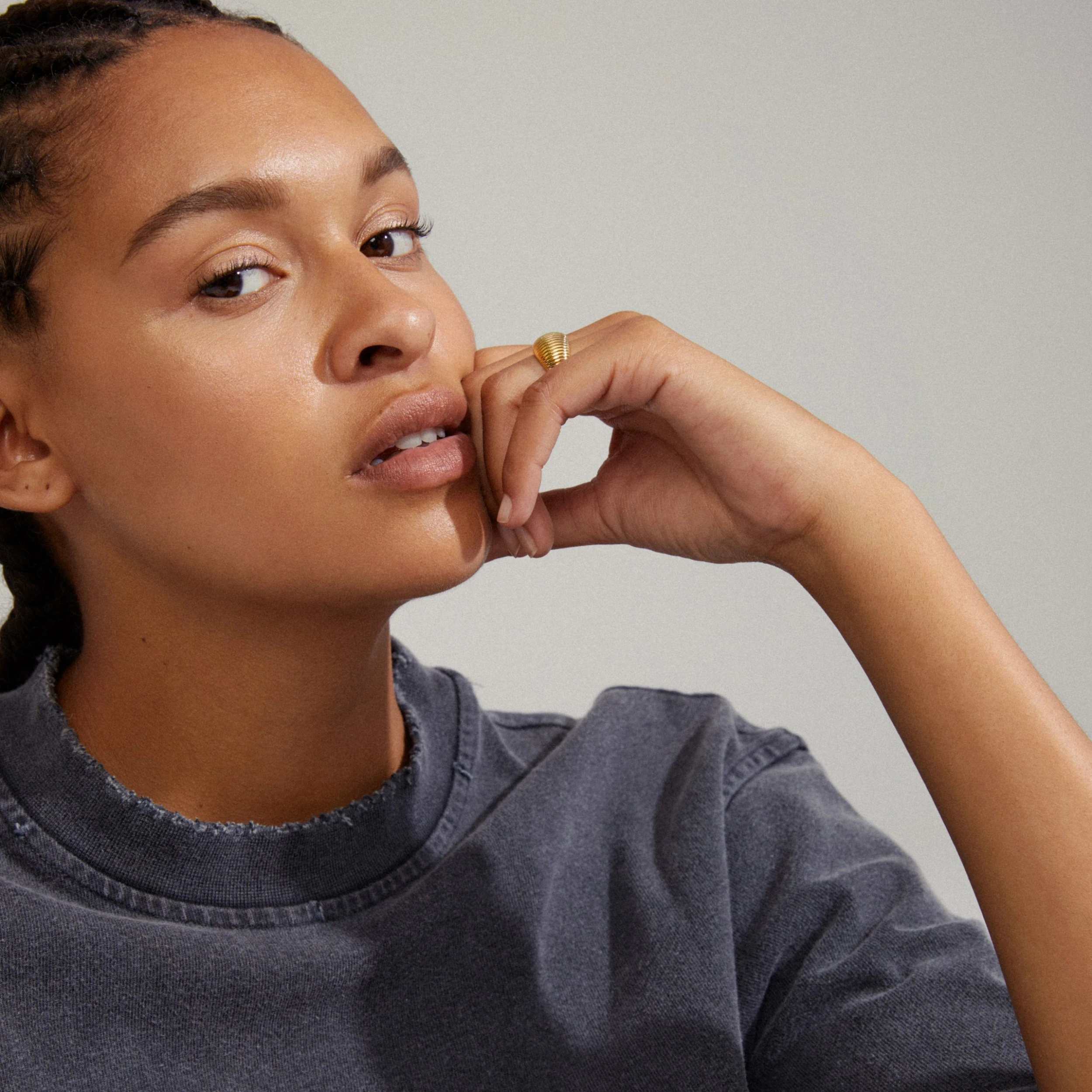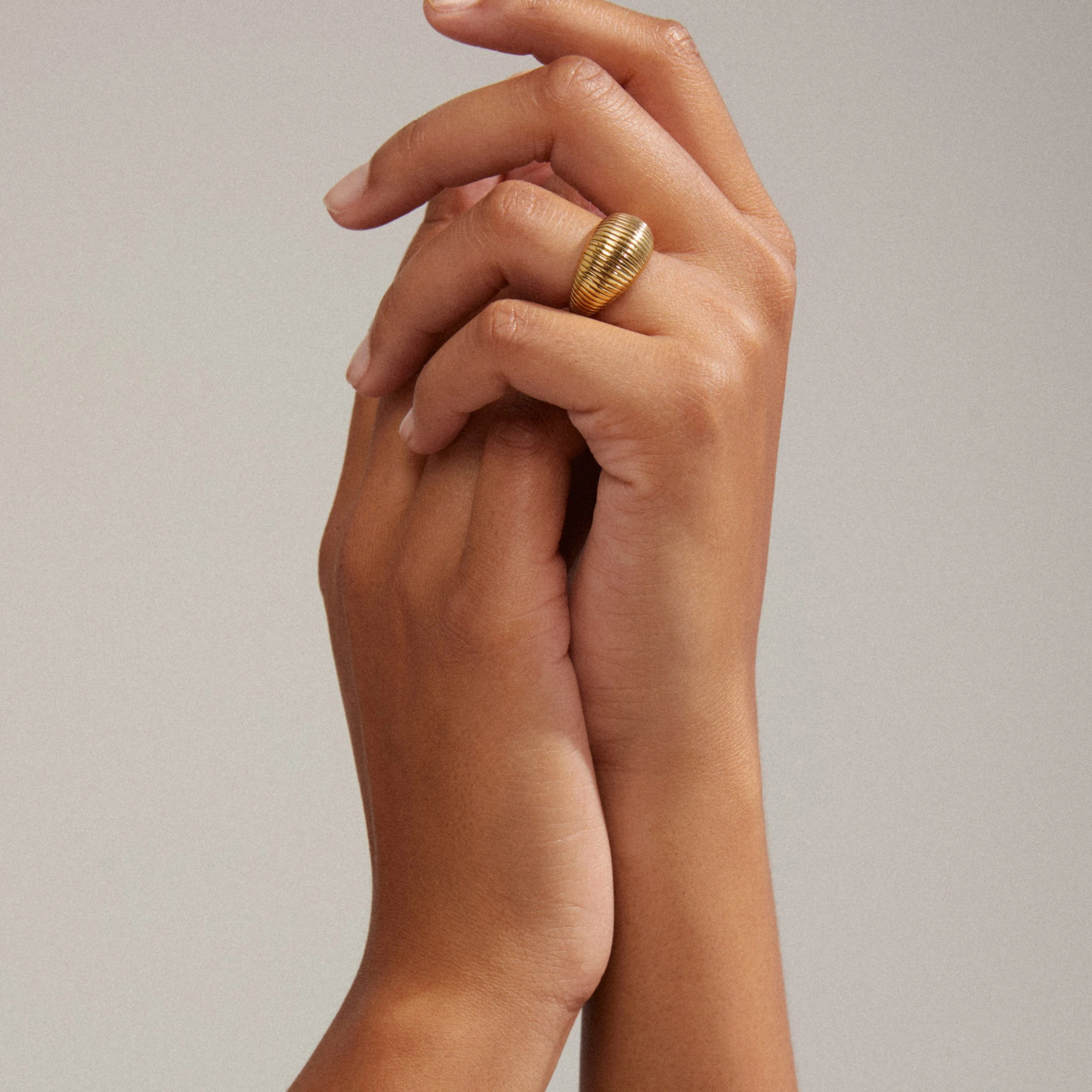 Ring med enkel curvy design och en vridning i form av spårstrukturer i ytan. En riktig evergreen med massor av karaktär. Låt ringen stråla som den är eller styla den tillsammans med dina andra favoritsmycken för en exklusiv look. Ringen är ett återvunnet smycke och därmed tillverkad av minst 75 % återvunnet material.