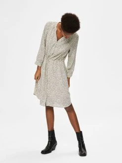 Selected Femme SLFDAMINA 7/8 AOP DRESS NOOS (Sandshell)