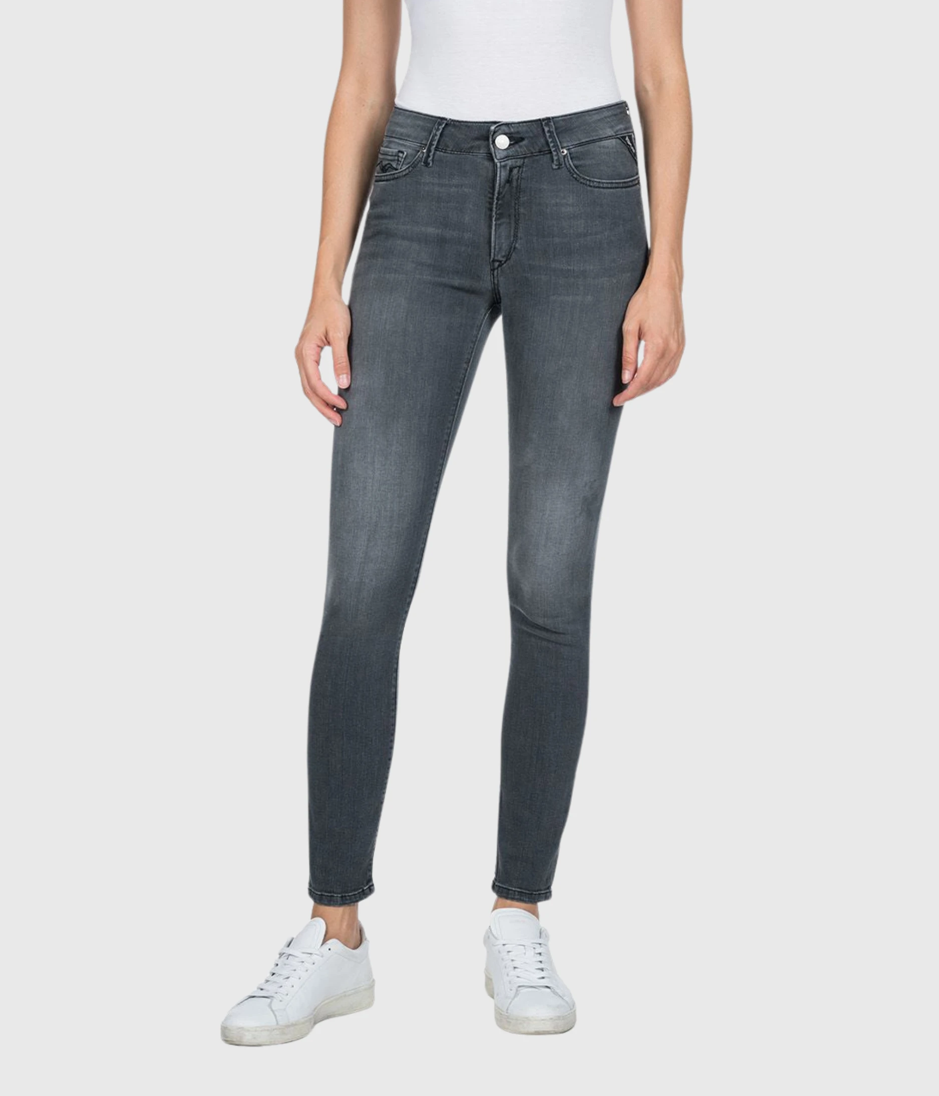 LUZIEN är ett par gråa skinny jeans från Replay och deras Hyperflex-kollektion. Midjan är högre och byxan går hela vägen ner till ankeln.