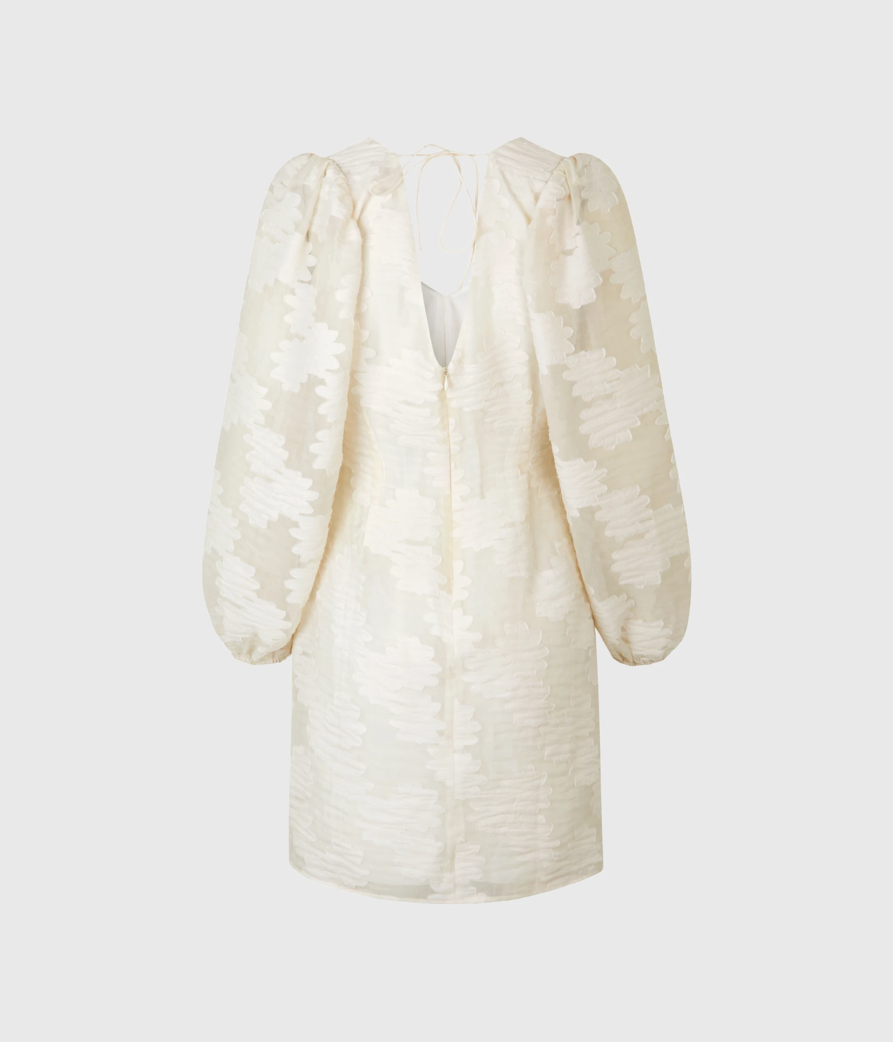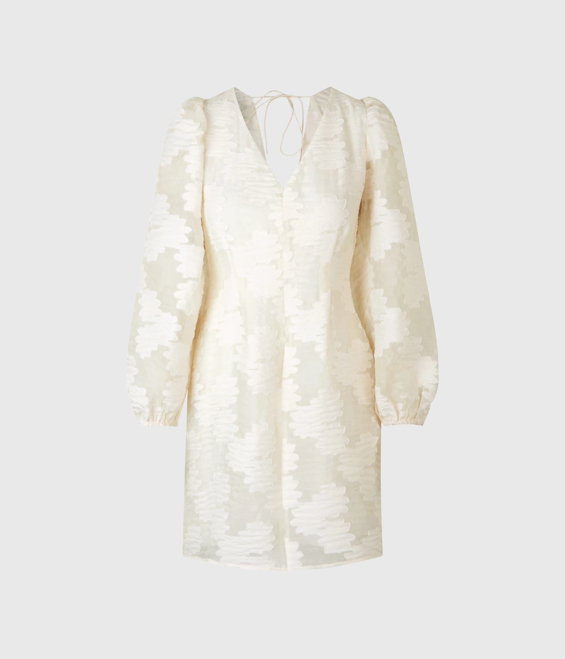 Kort klänning med normal passform och långa puffade ärmar. Klänningen sitter åt aningen i midjan för att skapa en fin siluett.