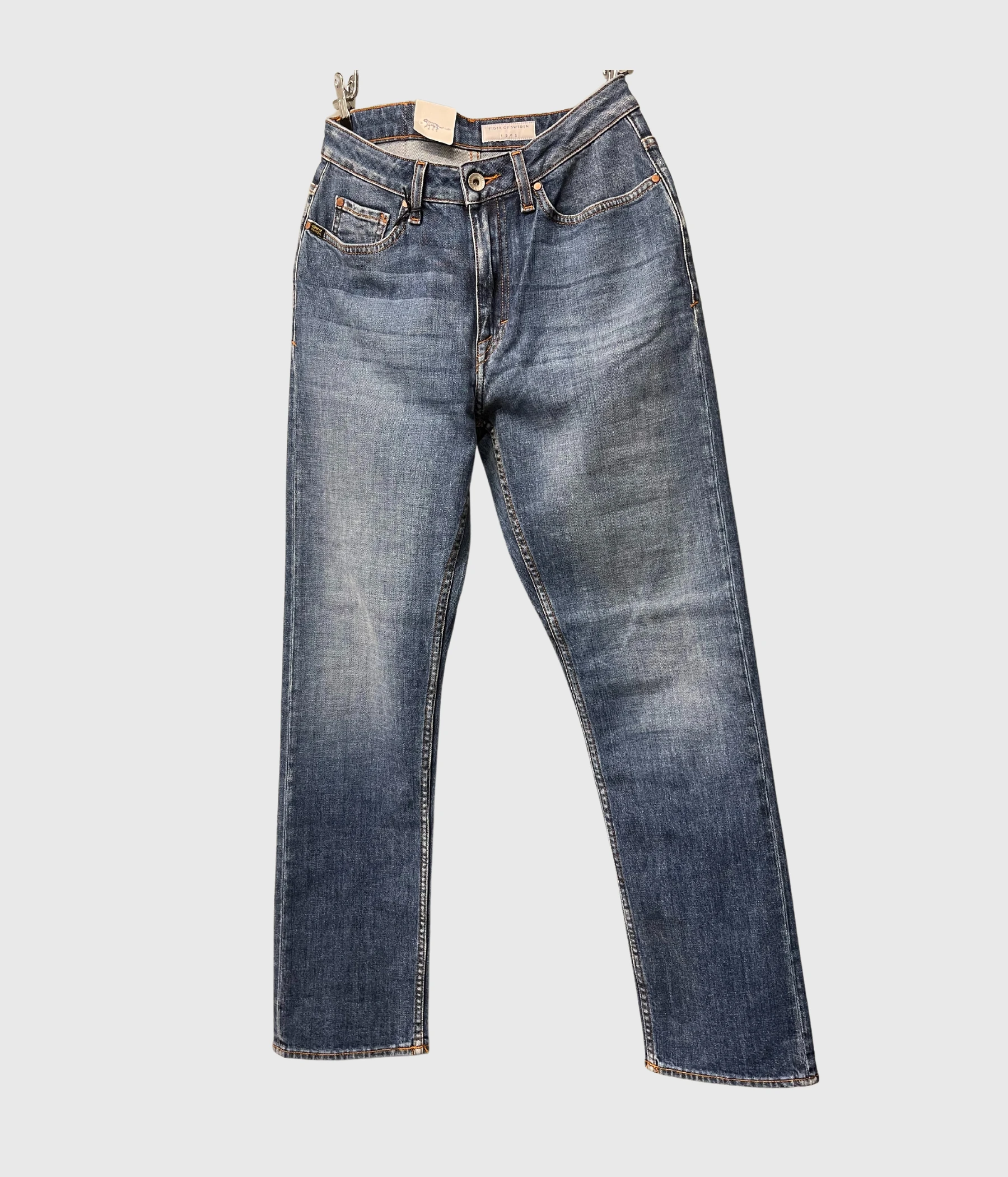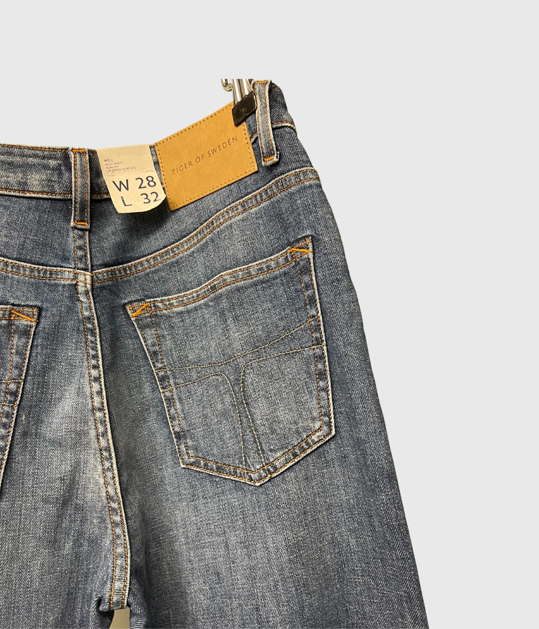 Vår storsäljare MEG i mellanblå. Slim-fit jeans med fem fickor. Hög midja med rakt ben och ”croppad” längd.